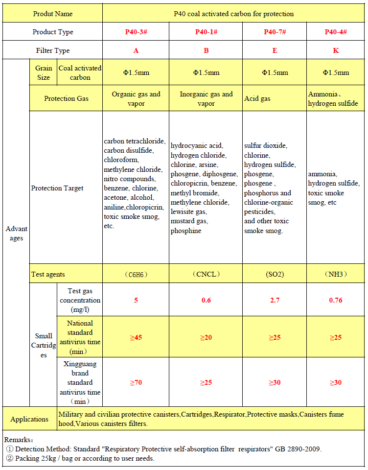 The main process is to choose the best quality, the best porosity of activated carbon as based carbon,and made it after finishing treatment, dipping chemical catalyst, temperature pyrolysis, drying, dedusting and other processing procedures . Products have a large surface area, fast chemical catalytic reaction, good anti virus performance, high mechanical strength, and easy to produce charcoal,which is widely used in military and civilian gas masks, protective masks, various types of canisters, cartridges, anti-virus filters and special fume hood filter plate ,etc.