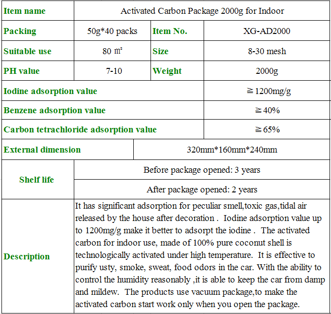For indoor use activated carbon package (2000g)