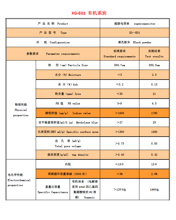 XG-E01有機系超級電容器用活性炭是以果殼為原料,經預氧化、炭化、活化、特殊的后處理精加工而成。本產品具有極其發(fā)達特殊的孔隙結構和超高的比表面積,金屬含量和灰分含量極低,能量密度和功率密度極高,充電時間短,充放電循環(huán)次數高,電化學穩(wěn)定性好,使用環(huán)境友好,使用溫度范圍廣等特點。廣泛應用于各種超級電容器的制作和儲能領域。