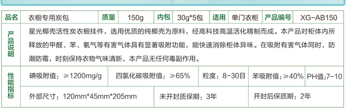 衣櫥專用炭包(150g裝)